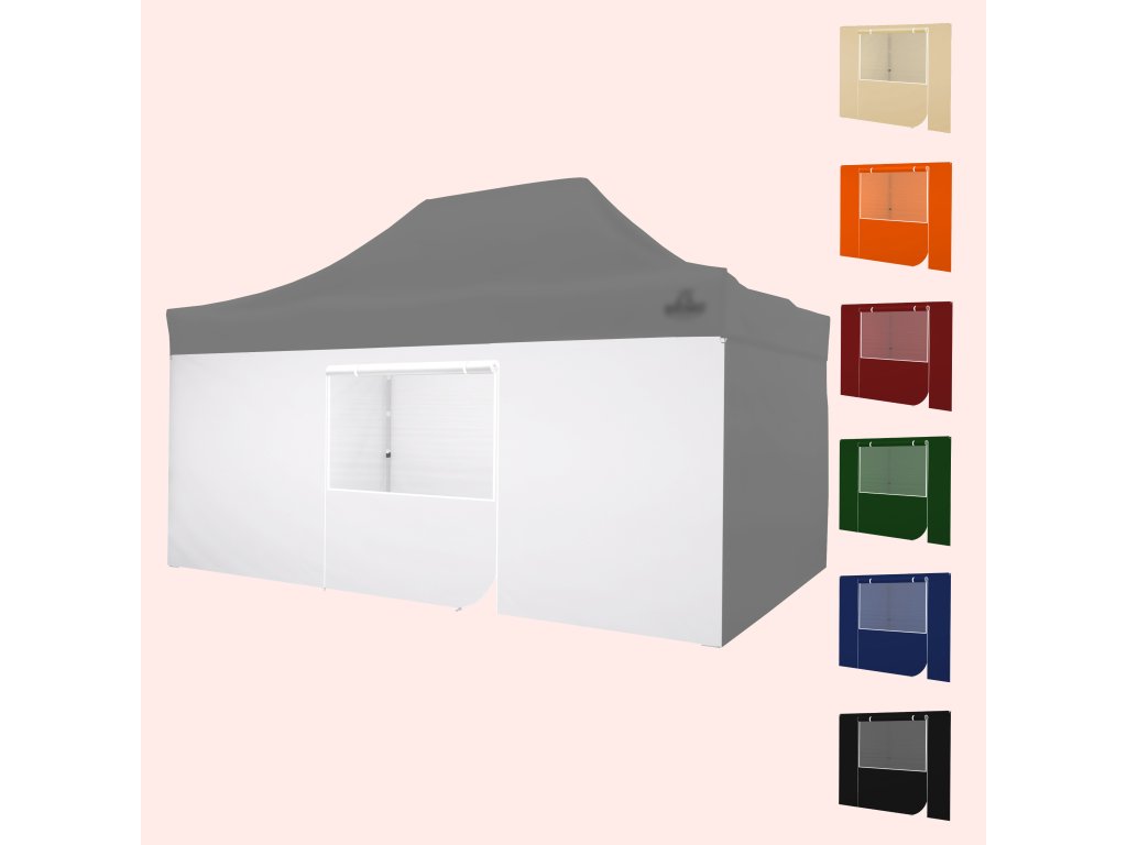 Az oldalfal kialakítása könnyű belépést és kilépést tesz lehetővé a hajtogatható pavilonból. Kényelmes és hatékony használatra tervezték.